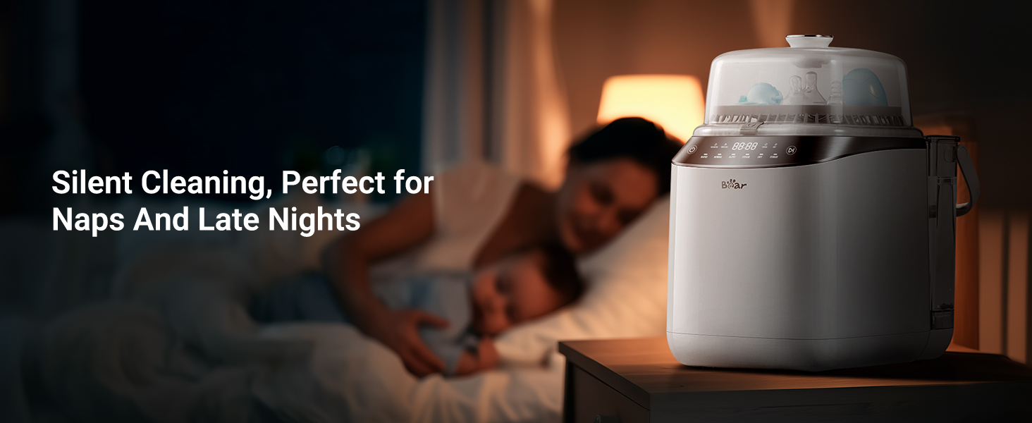 - ULTIMATE 4-IN-1 BABY BOTTLE WASHER: The Bear Baby Bottle Washer offers a complete cleaning solution: washing, sterilizing, drying, and hygienic storage—all in one compact unit. Say goodbye to manual scrubbing and hello to more quality time with your baby