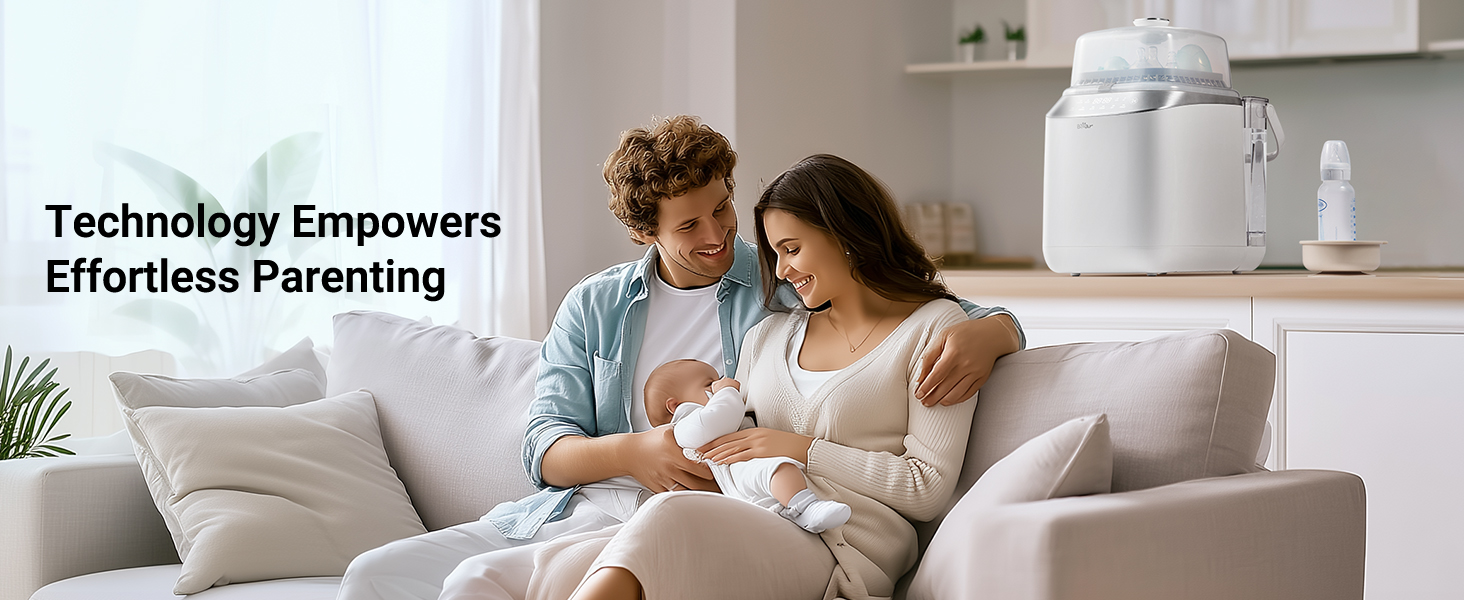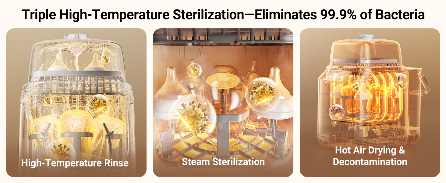 - HIGH-TEMP STEAM STERILIZATION & HOT AIR DRYING: Uses 212°F (100°C) high-temperature steam to eliminate 99.99% of bacteria, followed by gentle hot air drying—ensuring every item is clean, dry, and ready to use for your little one