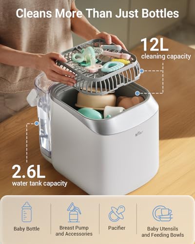 - TAILORED CLEANING OPTIONS: Select from 5 versatile modes—Rapid Wash, Normal Wash, Auto Wash, Sterilize & Dry, Storage—for customized cleaning. Need speed? Rapid Wash delivers spotless bottles in just 19 minutes, perfect for busy parents