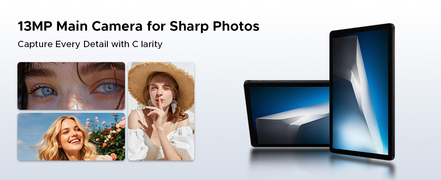 - 【13MP+5MP & High Quality Dual Speakers】The android 16 tablet features a 13MP rear camera supporting 1080p video recording, capturing crisp images for meeting presentations and travel scenery. The 5MP front camera delivers clear, natural visuals for live streaming and video calls. Equipped with high-quality dual speakers, gaming tablet delivers immersive, transparent sound for an enhanced experience.