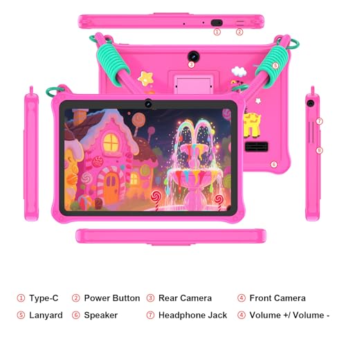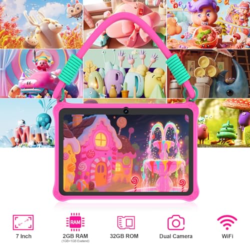 GOZZGEAR Android 13 Kids Tablets 7 inch for Toddler, Parental Control, Free Kids APP, 32GB, Expandable 512GB, 3500Mah, WiFi Dual Camera with Eye Protection, Pink