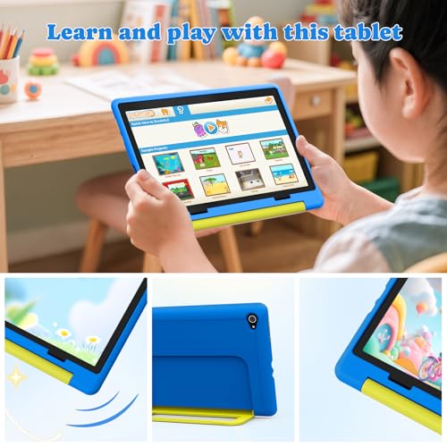 - Durable, Kid-Friendly Design with Rich Features: This lightweight tablet comes with a shock-absorbent case that protects against drops and bumps. An adjustable kickstand offers the perfect viewing angle, while dual speakers, dual cameras (5MP front + 8MP rear), Bluetooth 5.3 and Wi-Fi 6 connectivity provide a full-featured experience kids will love. And this kid tablet is a tablet special made for kids ages from 3-12 to building their skills and imagination in pleasure.