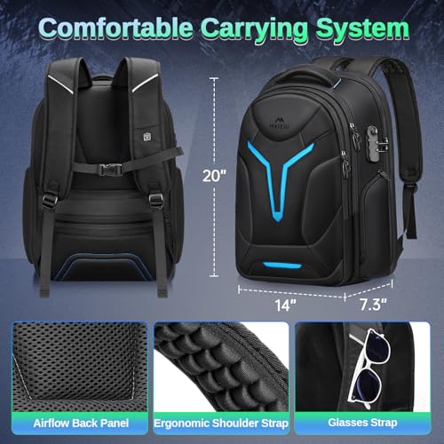 MATEIN Anti Theft Gaming Backpack with Rain Cover, 18.4 Inch Large Laptop Backpack for Men with Insulated Pocket, Waterproof Rucksack with USB-C Charging Port, TSA Computer Bag for Gaming Accessories