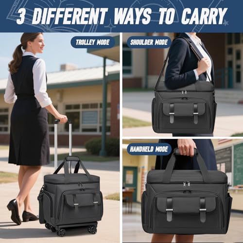 Rolling Teacher Tote Bag for Women Men,Large Tote Bag with Detachable Wheels Trolley,15.6 Inch Laptop Wheeled Teacher Bag for Work Office