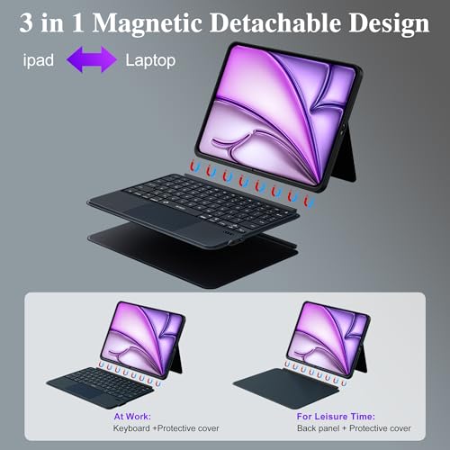 - Magnetic 3 in 1 Design:Detachable Magnetic Keyboard Case Stand,strong magnets secure stable attachment.Instantly transforms your iPad case into a typing keyboard or adjustable viewing stand.Suitable for movies,video calls and meetings.Ideal for office,travel,and outdoor adventures.PU Leather full-edge coverage,protects your tablet from drops and scratches