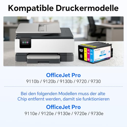 Built-in Chip– The Nestink 937xl ink cartridges feature the latest upgraded chipset, ensuring seamless compatibility with the printer. No complex operations such as chip removal are required, and installation can be completed within one minute Package Contents – 1 x Black 937 XL Ink Cartridge, 1 x Cyan 937 XL Ink Cartridge, 1 x Magenta 937 XL Ink Cartridge, 1 x Yellow 937 XL Ink Cartridge, 1 x User Manual (4 cartridges in total) Compatible Models – These cartridges are suitable for HP OfficeJet Pro 9110b / 9120b / 9130b / 9720 / 9730 series printers High Page Yield – Nestink 937xl cartridges offer ample capacity. Each 937xl cartridge can print approximately 2,500 pages of black-and-white documents and 1,650 pages of colour documents (based on A4 paper with 5% coverage) Outstanding Print Quality – Nestink 937xl high-performance ink cartridges deliver excellent output and exceptional colour reproduction, ensuring perfect image and colour representation Note: This product is not compatible with subscribers of the “HP+” service, meaning it is not suitable for use with “e‑series” printers, such as models 9110e / 9120e / 9130e / 9720e / 9730e