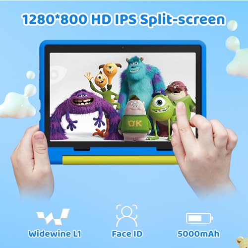 - 【5000mAh Battery +10.1 Inch 1280*800 HD Screen】: This tablets for kids is equipped with a 5000mAh battery, which allows children longer periods of learning and entertainment. It also features a 1280 x 800 IPS high resolution screen that reduces eye fatigue and exposure to blue light, protecting children's eyesight with prolonged use. It is an excellent choice for children on long car trips and for learning purposes.