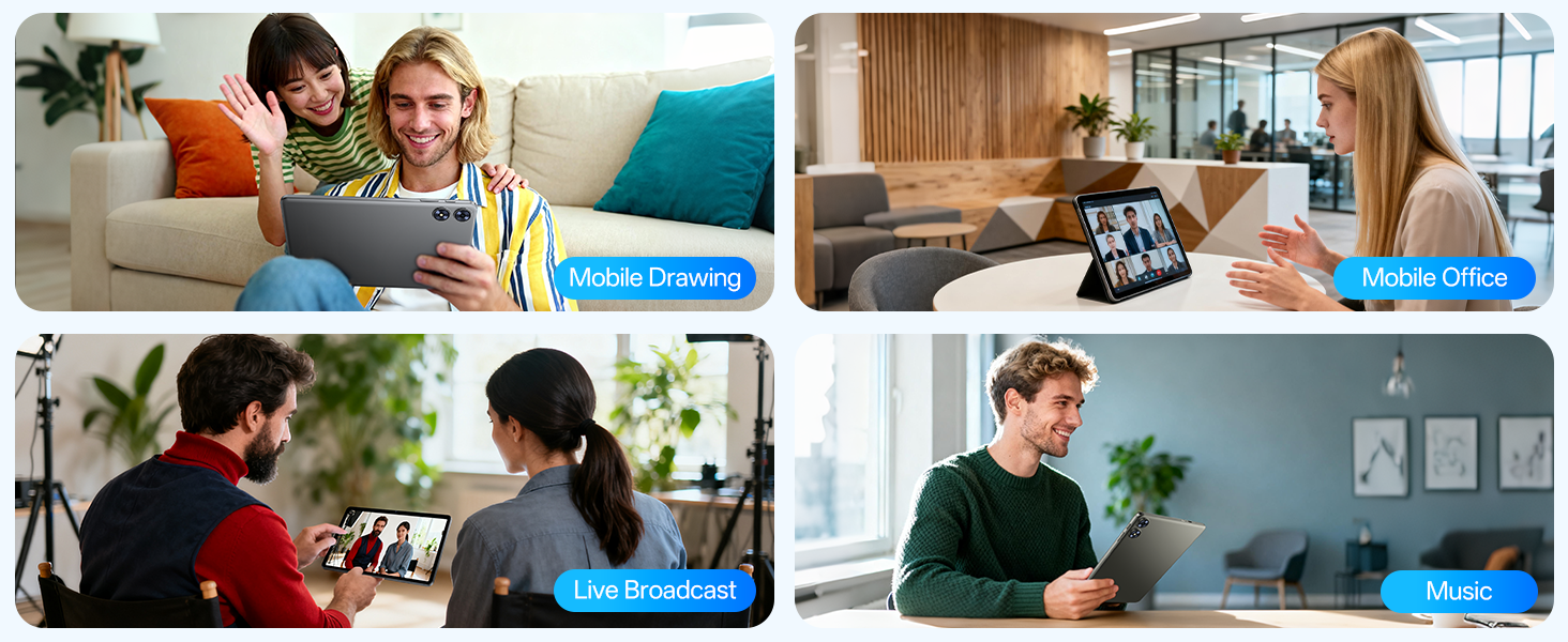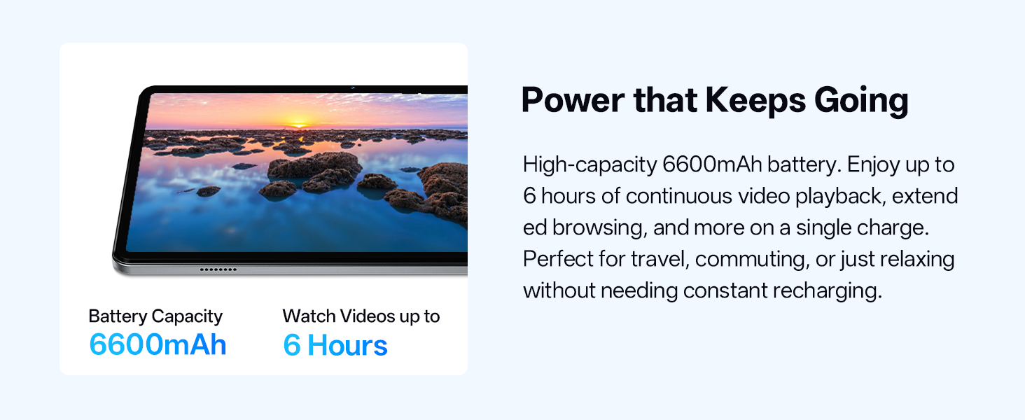 - Stable Connectivity & Battery – This Android 15 tablet supports dual-band Wi-Fi for significantly improved connection stability and speed, along with Bluetooth 5.0 for easy pairing with wireless accessories. A 6600mAh battery supports up to 6 hours of continuous video playback.