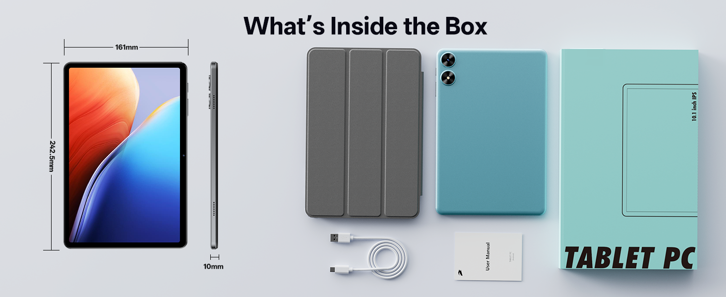 - Worry-Free Warranty – Backed by a comprehensive 2-year warranty covering defects in materials and workmanship under normal use. The package includes the tablet, a USB-C cable, a case, and a quick start guide.