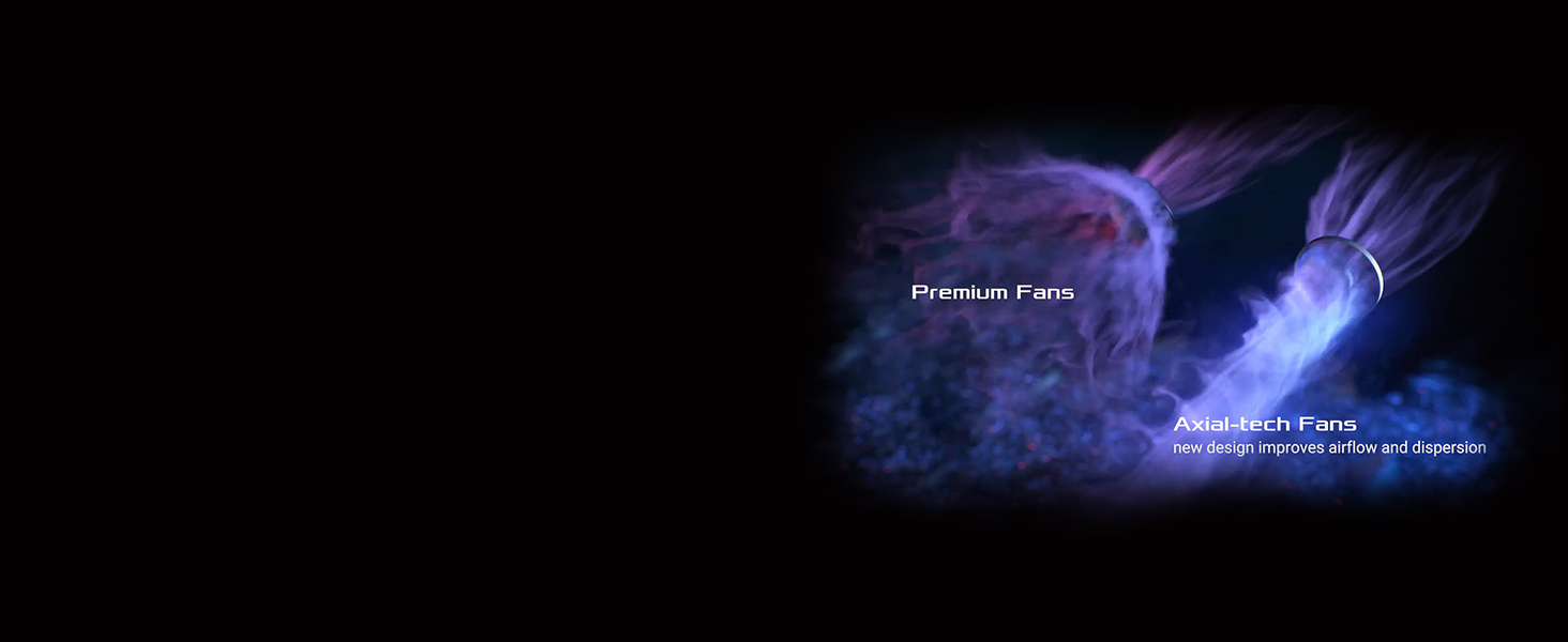 A carefully designed shroud, heatsink, and heatpipe layout enables the two Axial-tech fans to leverage chassis side-panel ventilation, delivering thermal performance that beyond the compact size.