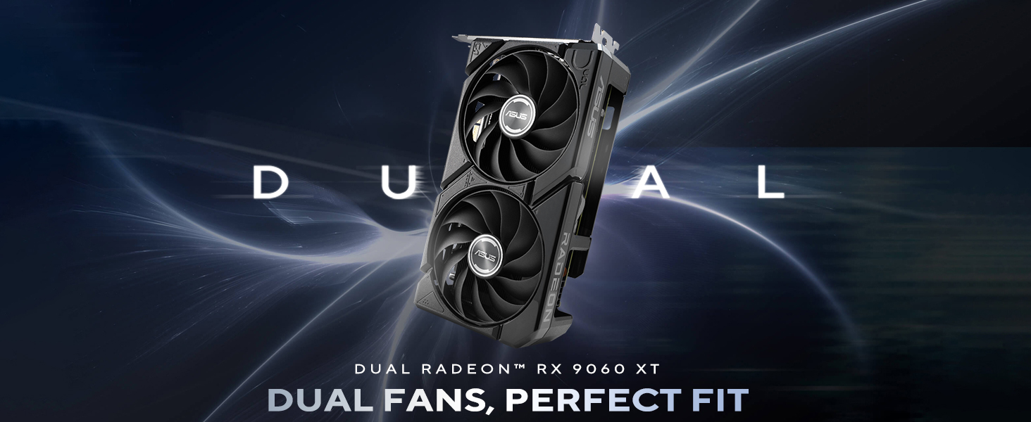 ASUS Dual Radeon RX 9060 XT 16GB GDDR6 Graphics Card (PCIe 5.0, HDMI 2.1b, DisplayPort 2.1a, 2.5-slot design, Axial-tech fan design, 0dB technology, and more)