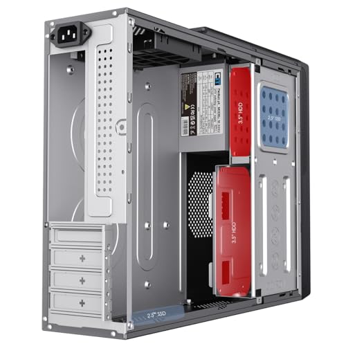 CiT S014C Slim Micro ATX Office PC Case with 300W Power Supply – Micro-ATX & Mini-ITX Support – 80mm Fan Pre-Installed – USB Type-C, USB 3.0 & USB 2.0 – Business Workstation Case | Black