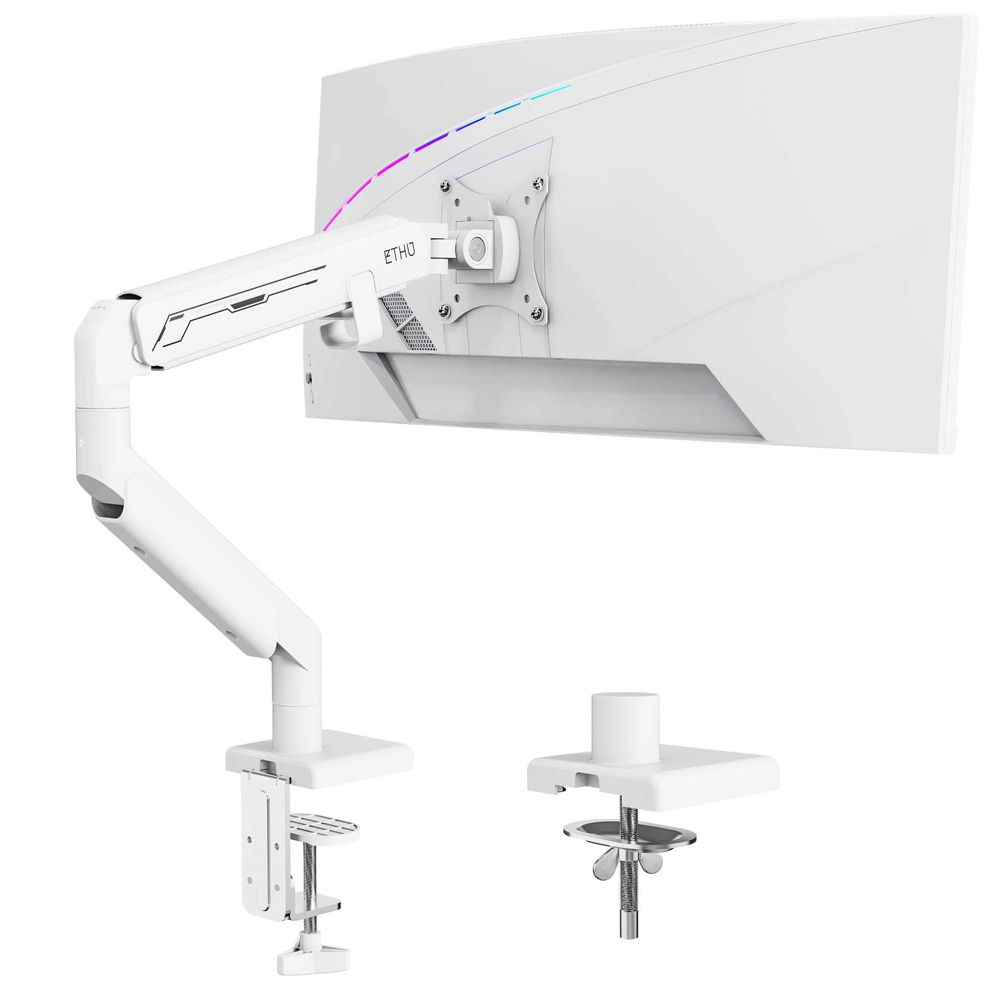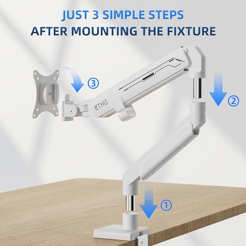 ETHU Heavy Duty Single Monitor Arm with Gas Spring, VESA Desk Mount for 17-40 inch Screens up to 14KG, Full Motion Adjustable Monitor Stand for Office & Home, White