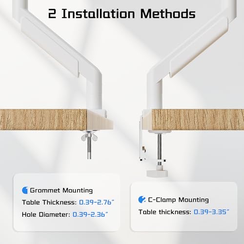 - 【Dual Installation Options】 This vesa monitor mount offers clamp style for desks 1-8.5cm thick and grommet style for 1-7cm diameter holes. Featuring quick-release structure for simple installation requiring only basic screw tightening. The head torsion spring mechanism effectively prevents monitor droop while ensuring stable performance on various desk types and configurations.