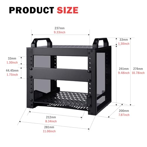 - Compact 4U 10-Inch Profile: With a space-saving design measuring 11.06"W x 9.48"H (4U) x 7.87"D, this compact rack efficiently houses your essential gear while fitting perfectly in home offices, desktop setups, and enterprise environments where space is at a premium