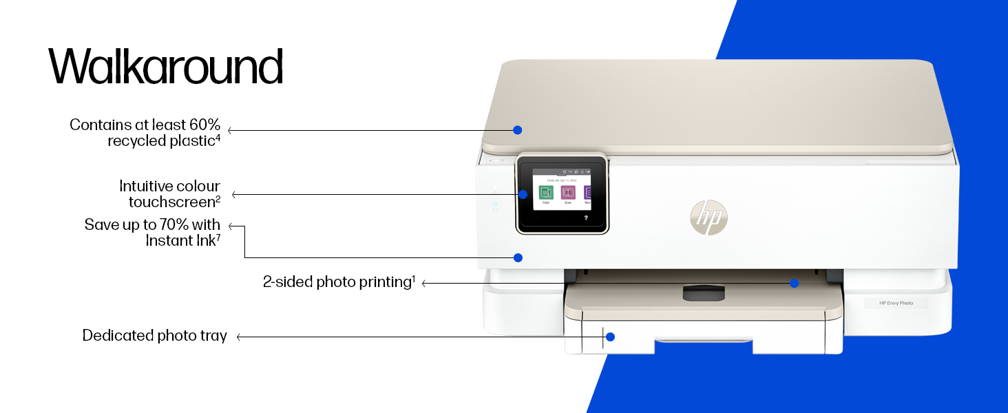 HP Envy Photo 7234 All in One Photo Printer | Wireless | Print, Scan & Copy | 6 months free Instant Ink | Dedicated Photo tray | Touchscreen | 2-sided photo printing | Self-healing dual band Wi-Fi