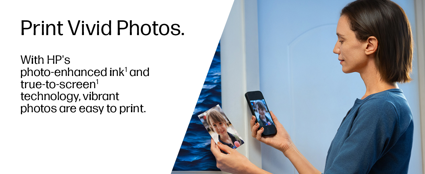 - HIGH- QUALITY HOME PHOTO PRINTING: Print documents and borderless photos that look like they do on your screen with HP's true-to-screen tech. Customize the backs of photos for personalized cards with HP's exclusive automatic 2-sided photo printing. Turn memories into stunning, high-quality prints with photo-enhanced ink for richer, more vibrant colors.