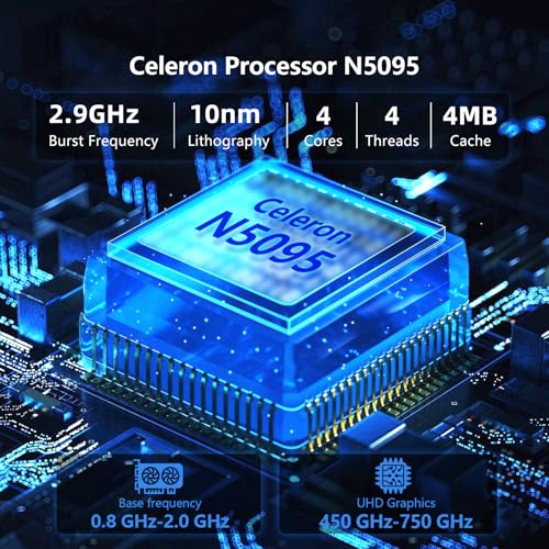 - 【Efficient Business Performance】15.6-inch HD laptop equipped with Celeron N5095 chip, up to 2.9GHz, quad-core and quad-thread fast processing, pre-installed Win 11 Pro, built-in security center to prevent virus intrusion, and supports a variety of office software. The excellent screen ratio provides a truly comprehensive screen display, suitable for daily study, work or leisure. This HD notebook runs smoothly and at a very fast speed, allowing you to easily handle various software without delay.