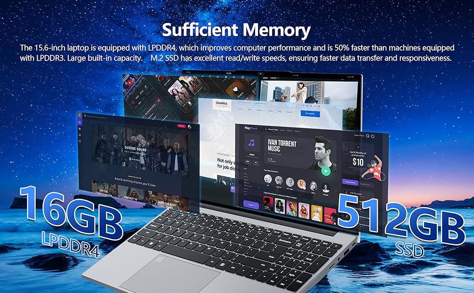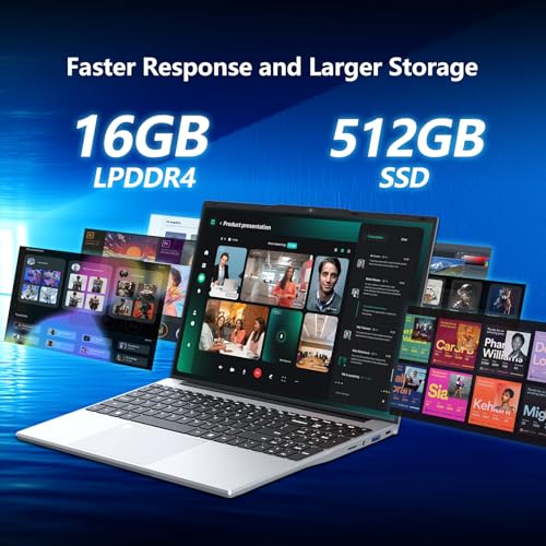 - 【Provide Ample Storage Space】Laptops high-performance 16GB RAM enables seamless multitasking, running your documents and photo and video editing applications smoothly. The spacious 512GB SSD provides fast boot time and efficient data transfer, providing you with ample storage space. This laptop is also pre-installed with Win11 system, which provides enhanced user experience, speed, security and efficiency, so the boot time and data access are faster and quieter, and the battery heat and power consumption are reduced.