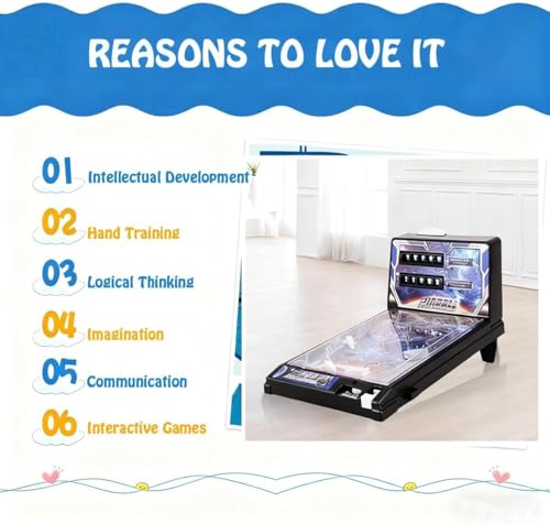 - Construction ABS Premium & All-In-One Gaming: Fabriqué à partir de matériau ABS écologique de haute qualité pour une durabilité et une sécurité exceptionnelles. Doté d'une conception intégrée complète incluant un tracker manuel de scores élevés, un marqueur automatique en jeu et des lumières clignotantes multicolores vibrantes, offrant une expérience de pinball d'arcade rétro authentique et attrayante directement sur votre table.