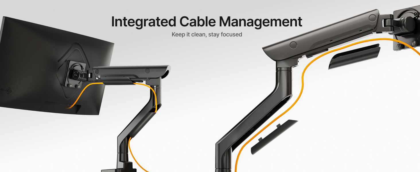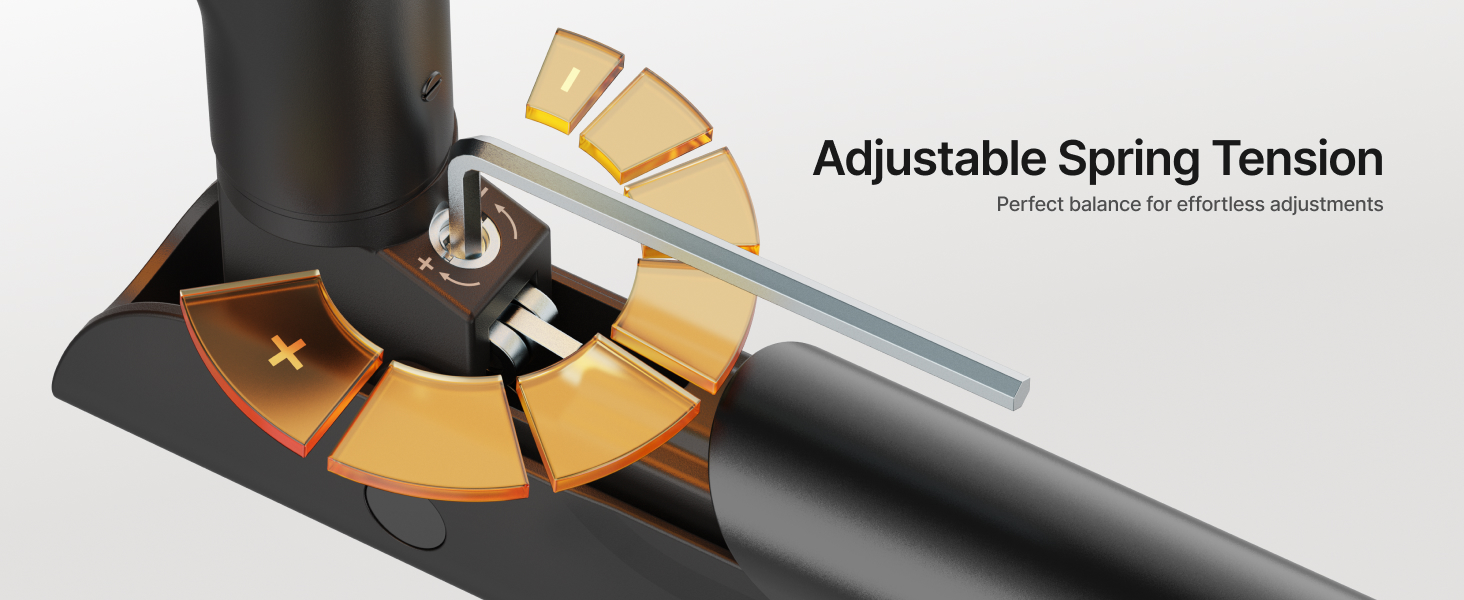 - 【Award-Winning Design & Premium Aluminum Build】Crafted from high-grade aluminum and honored with an iF Design Award, this monitor arm blends exceptional durability with refined aesthetics. The hidden gas spring tension port ensures a sleek look while enabling long-term strength and performance.