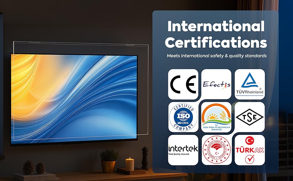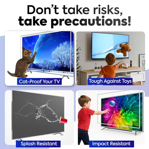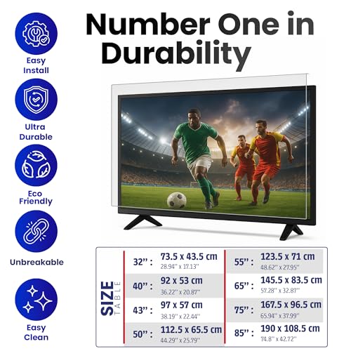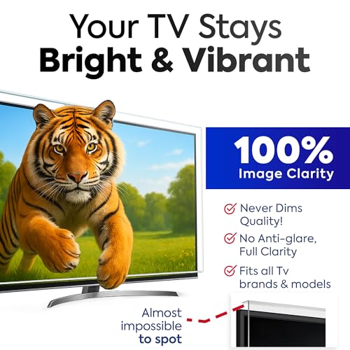 - SILENCESHIELD DIFFUSION STRUCTURE – STRONGER PROTECTION: Reduces vibration and impact resonance, minimizing the risk of damage to your TV. ⚠️ Warning: If your TV is placed on a table and used with stand legs, the screen protector may touch the legs and sit slightly higher. Please check your stand height before ordering. For minimal glare, ensure your TV is not exposed to direct sunlight. Not compatible with curved (curved) TVs or touch-screen displays.