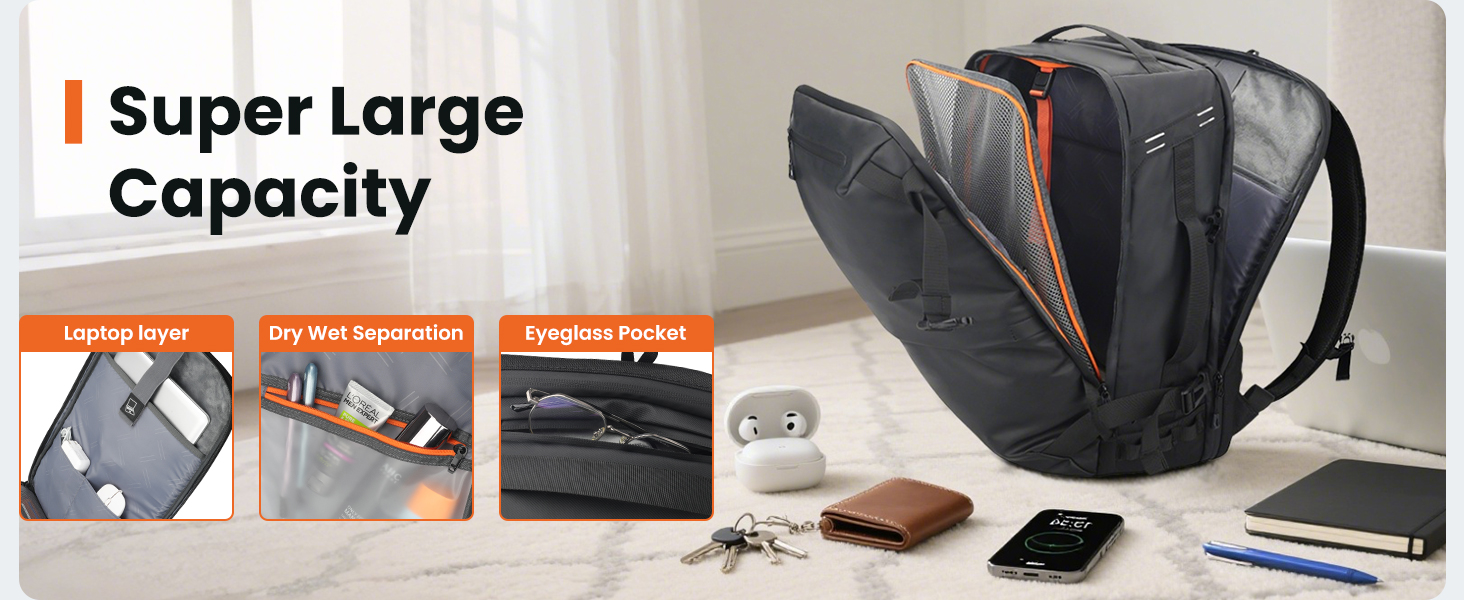 SWICKY Travel Backpack 40L,Rucksack for Men, Bag