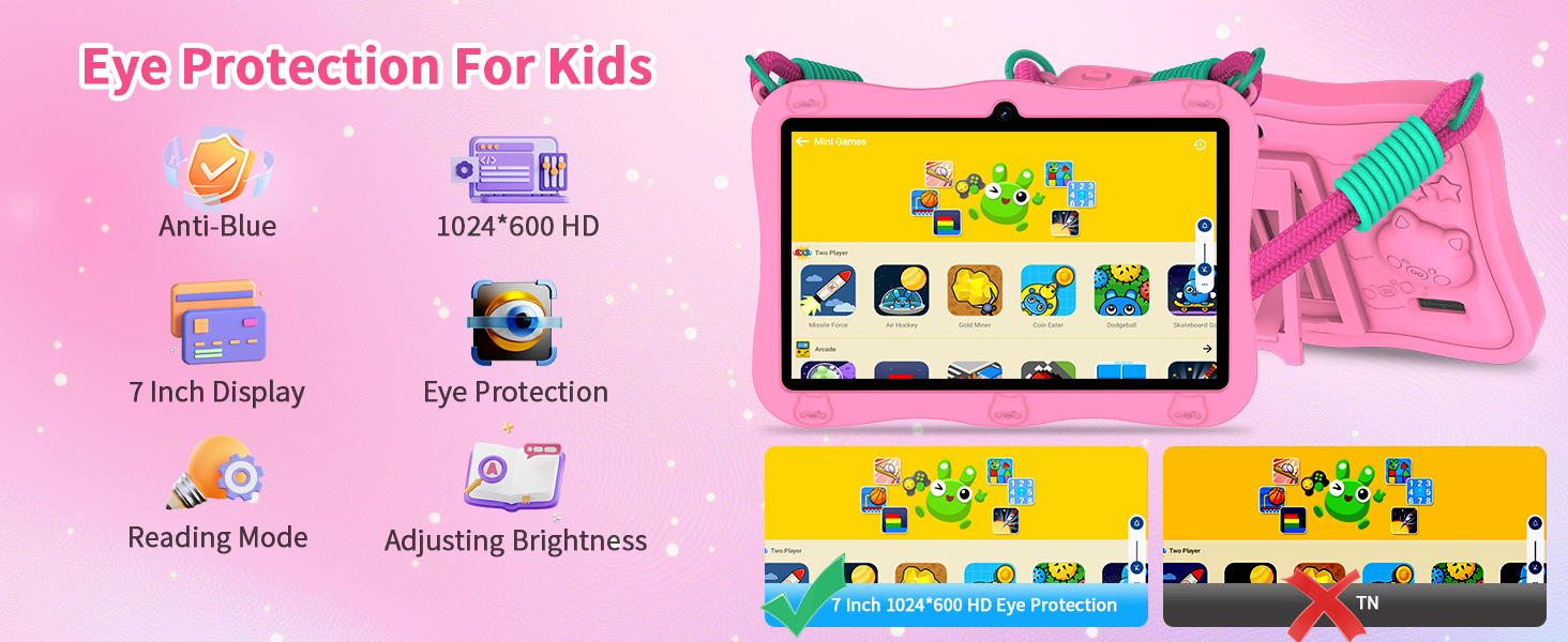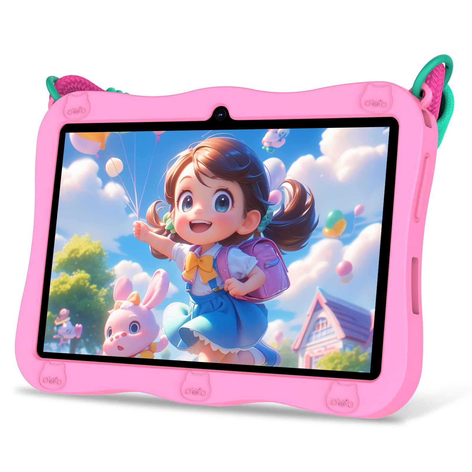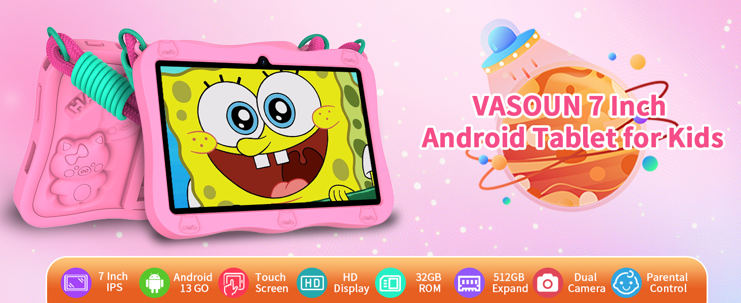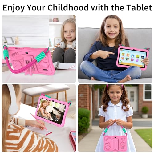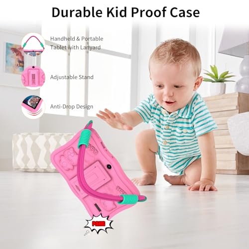 VASOUN Lanyard Kids Tablet 7 inch, 32GB Toddler Tablet Android 13 with WiFi, Dual Camera, Education, Games, Kids Software Pre-Installed, Parental Control, Pink