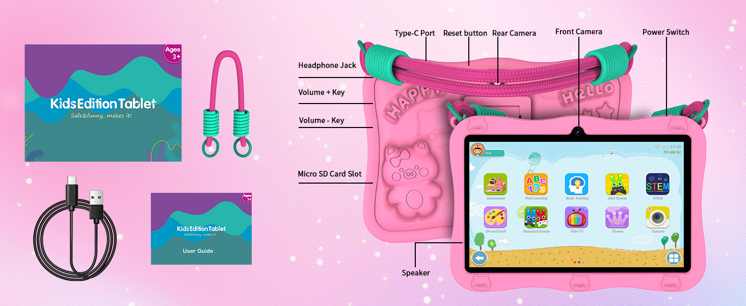 - [EDUCATIONAL & ENTERTAINING] – Kids will love the intuitive, child-friendly interface that empowers them to explore on their own. With a wide range of age-appropriate educational apps and games—covering topics like animals, clothes, fruits, and typing—your child can play and learn at their own pace. Designed for ages 2–12, the tablet supports developmental skills through engaging digital content.