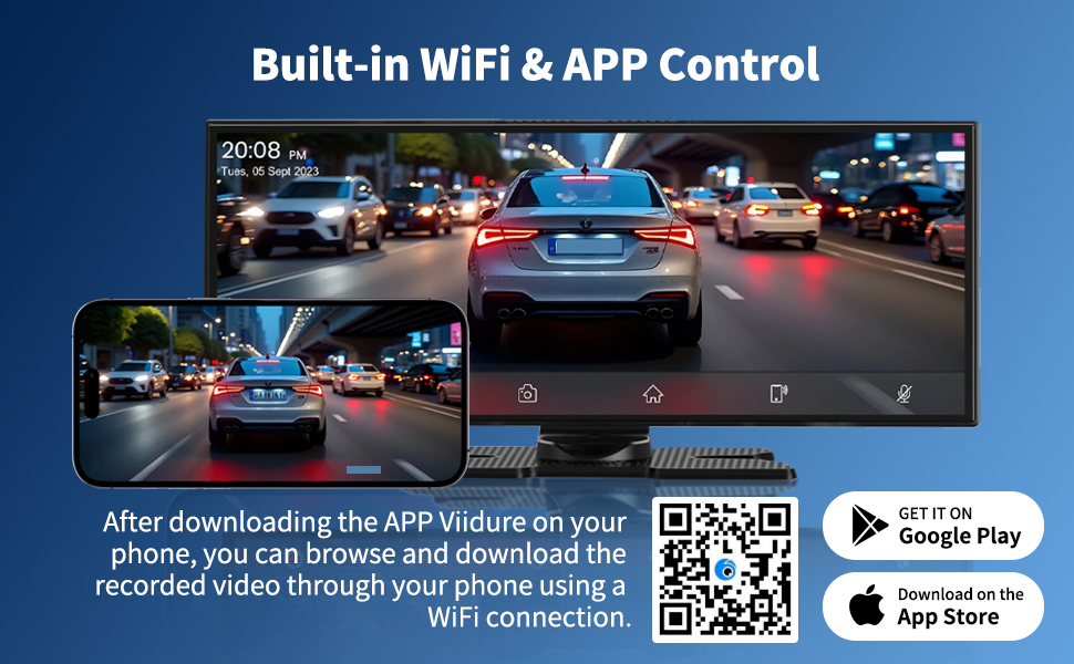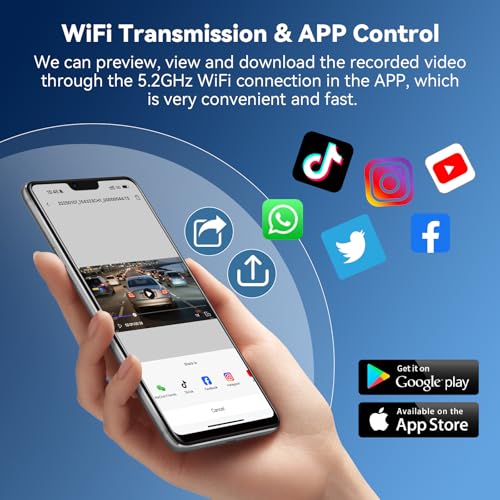 - 【App Preview & Loop Recording】After scanning the QR code on our phone to download the app, we can connect to the wireless Android Auto screen via phone WiFi and preview or play videos through the app. By inserting a 64GB SD card, the car play will automatically loop videos, overwriting the oldest files without the need for manual cache clearing