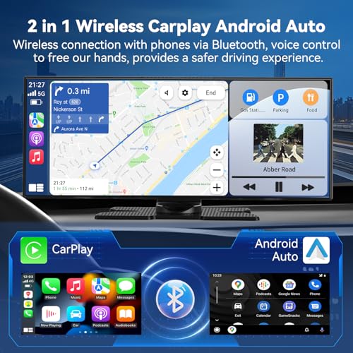 - 【Wireless CarPlay & Android Auto】Our car play screen supports not only wireless CarPlay connection but also wireless Android Auto connection. Once connected via Bluetooth to CarPlay or Android Auto, we can use our car tablet to access phone features such as navigation, voice control, music playback, and call handling, providing a more comfortable, safe, and intelligent driving experience