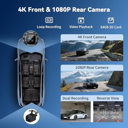 - 【4K Front & 1080P Rear Cameras】Our carplay screen for car comes with a 4K HD front camera and a 1080P IP65 waterproof rear camera, offering 140° front and 138° rear wide-angle coverage. The wireless carplay screen provides clear recording in all conditions, whether it’s raining or at night. When the rear camera is properly installed and the car is put in reverse, the android car play automatically switches to the rear view, assisting with parking and reversing