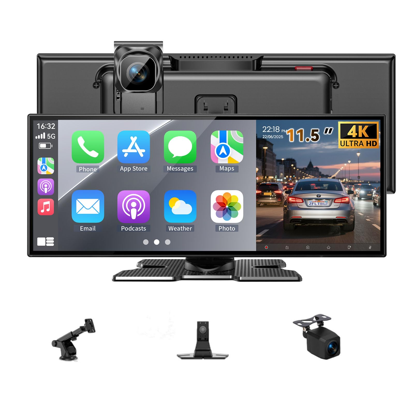 ●11.5'' Car Tablet Pro Max 2025, Carplay Screen for Car with 4K Front Camera and 1080P Rear Camera