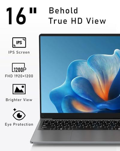16 inch Laptop Celeron N150 up to 3.6 GHz, 16 GB RAM 1 TB SSD, Win 11 Pro 6000mAh Long Battery Notebook, FHD 1920×1200 USB 3.0 BT 5.0 WIFI 5 HDMI Backlit Keyboard-Space Grey