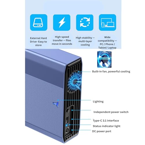 - Ample storage capacities for all your files: Available in multiple storage sizes (3TB, 4TB, 6TB, 8TB, 10TB, 12TB, 14TB, 16TB, 18TB and 20TB), this external hard drive offers plenty of room for backups, multimedia libraries, work documents, and game storage. Whether for professional projects or personal use, it meets your storage needs with ease.