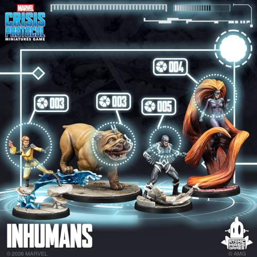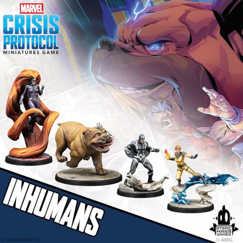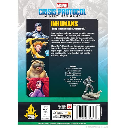 - Expansion – The affiliation pack Inhumans for Marvel: Crisis Protocol contains miniatures, Character Stat Cards, and Team Tactic Cards.