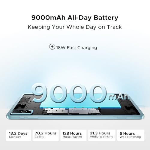 - 【9000mAh Battery + Octa-core Helio G100】✅✅This doogee android 16 tablet is built to last. It houses a massive 9000mAh battery that delivers up to 21.3 hours of video playback, 13.2 days of standby, or 128 hours of music, keeping you powered all day without searching for an outlet. Driven by a robust octa-core Helio G100 processor, it delivers fast app launches and seamless multitasking, whether you're streaming, gaming, or working. Longer battery life, thanks to this power-saving chip.
