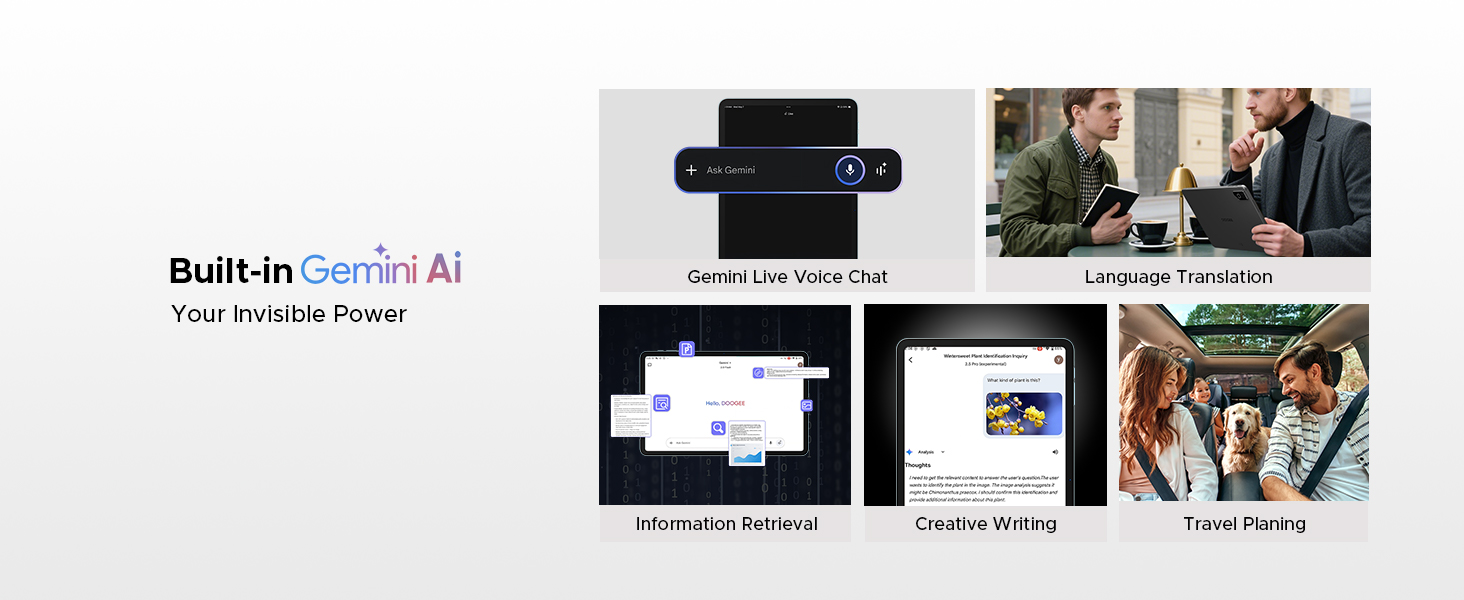 - 【Latest Android 16 + Gemini AI + 7.5mm Slim】 Powered by the latest Android 16 and integrated Gemini AI, the doogee tab g6 pro tablet with keyboard becomes your intelligent companion – instantly translating languages, summarizing documents, and assisting with emails or social posts. All these advanced capabilities run smoothly, housed in a remarkably slim 7.5mm ultra-thin body that’s both portable and powerful. This designed to fit seamlessly into your lifestyle while keeping your data private and secure.