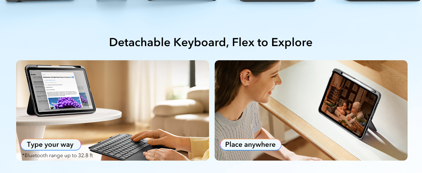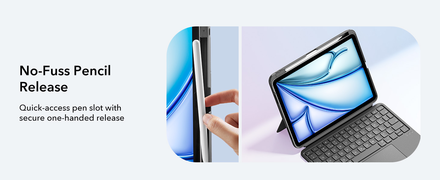 - Magnetic Detachable Design: instantly attach or detach your keyboard with a strong magnetic hold. Use it remotely when typing, then simply detach for pure tablet mode when reading, watching videos, or sketching. Effortlessly switch between your iPad and Mac for a seamless workflow