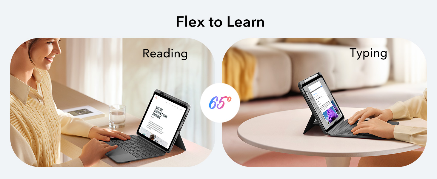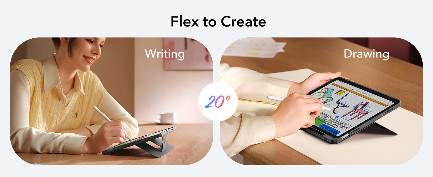 - Two Stand Angles: choose between a 65° angle for working, watching, or reading, and a 20° angle for sketching or writing. Our triangular support keeps everything steady—no wobbling or tipping