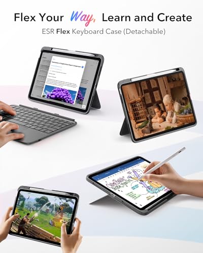 ESR iPad A16 (11th) 2025/10th Generation Flex Keyboard Case, Ultra-Light Magnetic Detachable Keyboard for iPad 10.9″ with Writing/Viewing Modes, Larger Precision Trackpad, Dark Gray