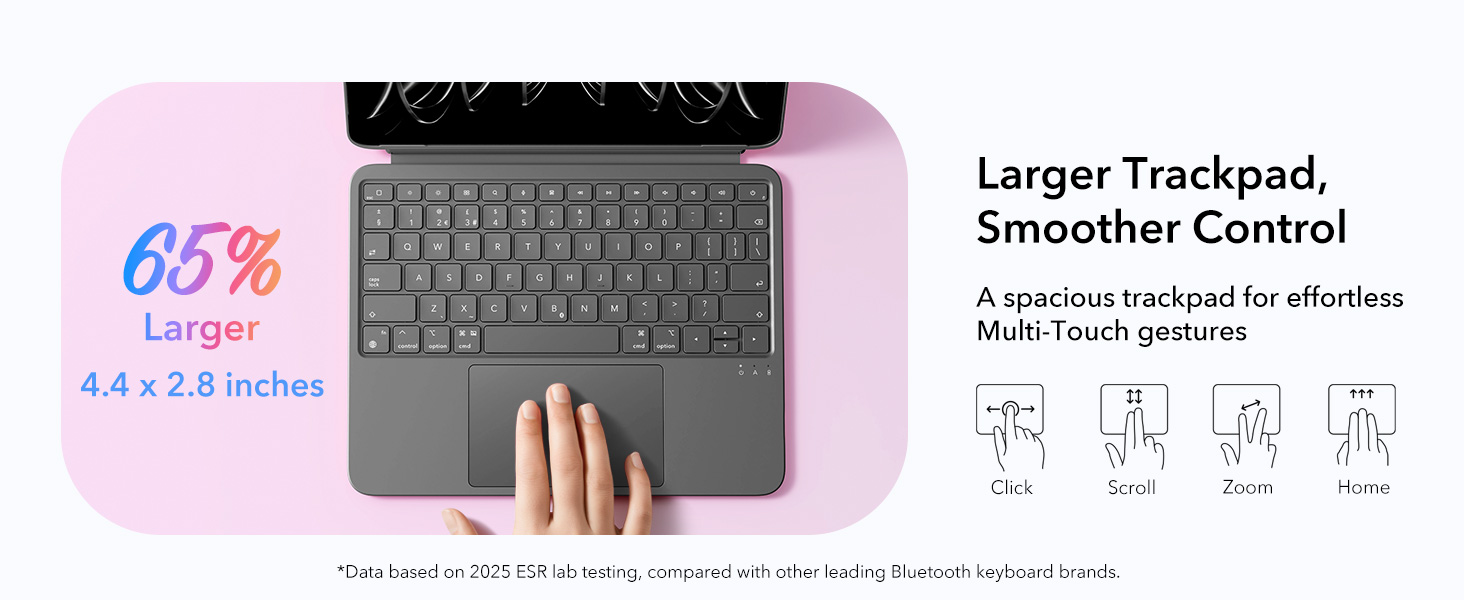 - Extra-Large Precision Trackpad: enjoy a 65% larger touchpad than those on regular keyboards for effortless navigation. Supports intuitive gestures from one-finger drag to three-finger scroll. Whether you’re editing, browsing, or switching apps, every move feels smooth and responsive.NOTE: No backlight.