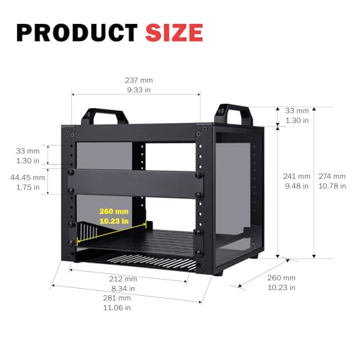 - Compact 4U 10-Inch Profile: With a space-saving design measuring 11.06"W x 9.48"H (4U) x 10.23"D, this compact rack efficiently houses your essential gear while fitting perfectly in home offices, desktop setups, and enterprise environments where space is at a premium
