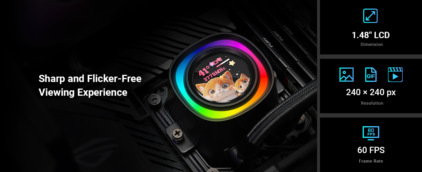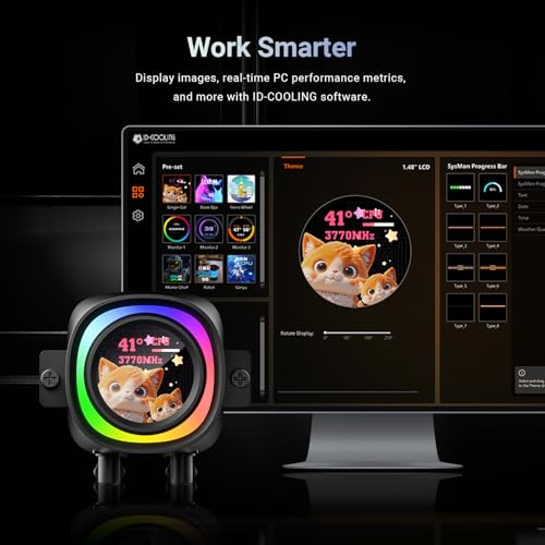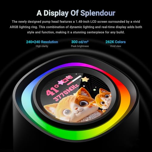- 【Striking Visuals & Personalisation】Features a built-in 1.48″ 240×240 px full-colour LCD screen (18-bit / 262K colours) plus ARGB lighting ring, so you can display system stats, images, animations, or custom graphics right on your CPU cooler.