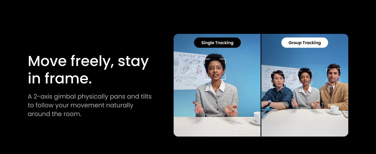 - AI Tracking: Insta360 Link 2 Pro physically pans and tilts to follow your movements around the room, keeping you or your group perfectly in frame.