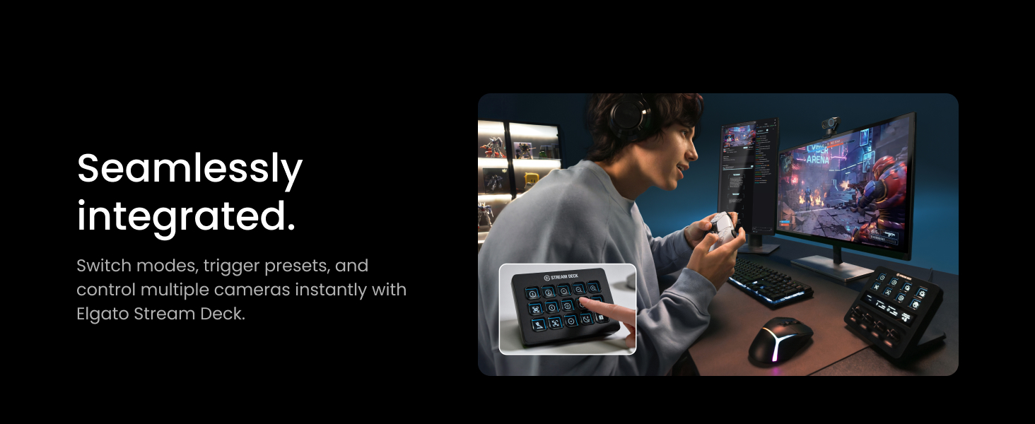 - Elgato Stream Deck Integration: Switch modes, trigger presets, and control multiple cameras for a faster, more efficient creator workflow.