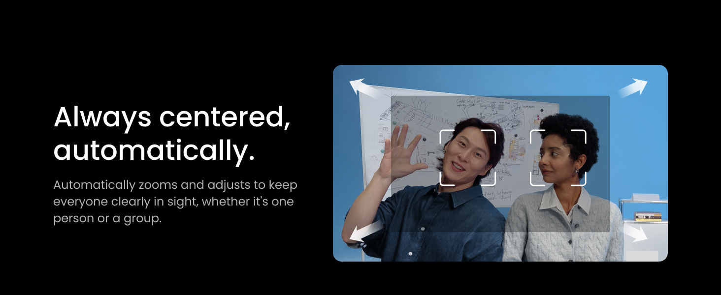 - Auto Framing: Insta360 Link 2C Pro automatically zooms and adjusts to keep everyone clearly in sight, whether it's one person or a group.