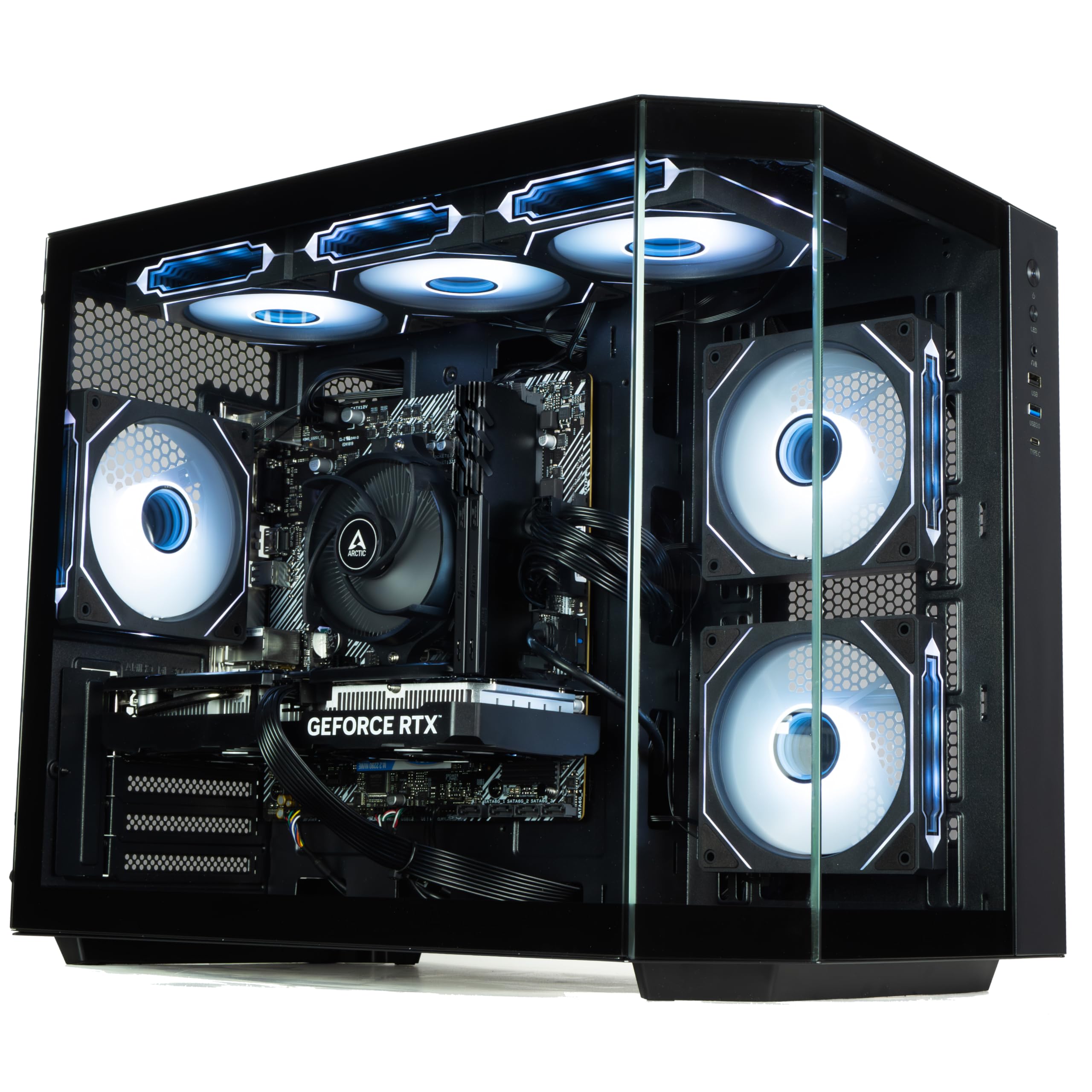 - Sleek IONZ Apex Black Case: Featuring a modern, minimalist design with excellent airflow and durable construction, the Apex Black chassis provides both style and functionality. Its tempered glass side panel showcases your components with pride, while optimized cooling support keeps your system running efficiently during intense gaming sessions.