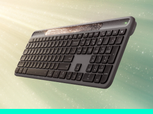 - Upgrade your space – A sleek and solidly built full-size keyboard with familiar laptop-style typing, made with recycled plastic (4)