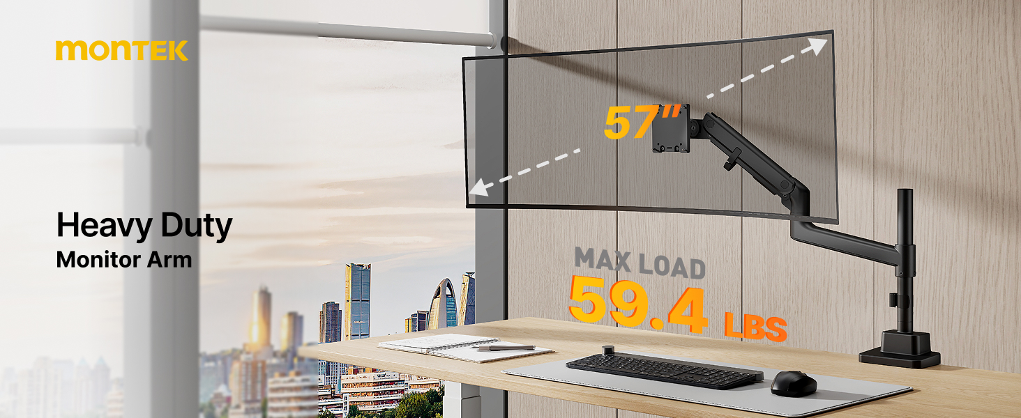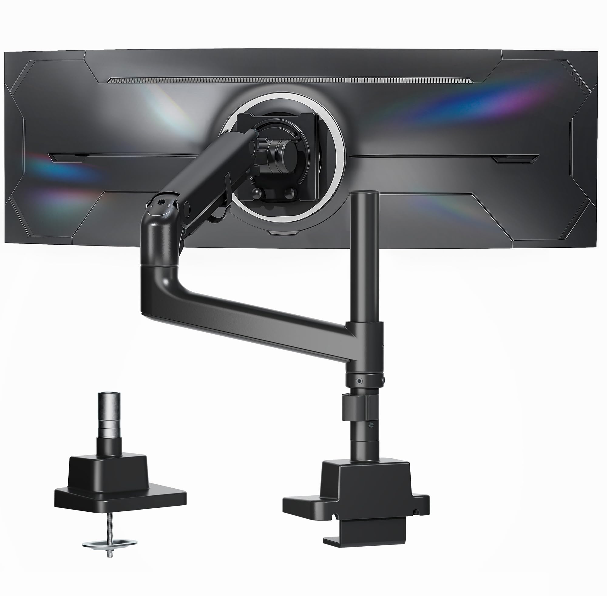 monTEK Heavy-Duty Single Monitor Arm for 17-57 inch, Load 27kg Ultrawide Screens, Gas Spring Curved Adjustable Monitor Stand for Desk, 75/100mm VESA Mount, Black